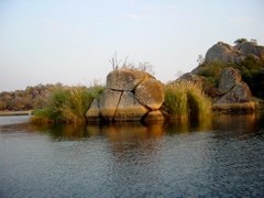 Although there were picnic sites at the foot of the kopjie, we hardly ever chose to stop here, preferring to go to a site near water. The Ovi River and Toghwana Dam were popular choices, but the favourite amongst us children was Maleme Dam. Maleme had everything - a large dam, trees, and endless granite rocks to climb. The convoy would roll cautiously down the approach road, past the rest camp and the dam wall to the left, and onto the dirt road that cut across the scrubby grass surrounding the dam. All around the dam rose great granite hills covered in acacia trees and aloes, home to monkeys, baboons and leopards. It paid to get there early to choose our picnic spot. Ideally this was flat, with enough trees for each car to park in the shade, and with climb-able rocks close by. Car doors would open as soon as we stopped, and after submitting to a layer of suncream on our faces, we would be off swarming over the nearest kopjies. The best picnics were when Auntie Ada and Uncle Willie came, bringing our cousin Clive. Having no brothers, we hero-worshipped him, and Clive could climb rocks and trees with barefooted simian agility. For the next hour we would explore the sun-warmed rocks, stopping now and again to climb one of the “paper” trees protruding from a crevice between kopjies. Although I was a child uneasy with physical activity, even I loved making my way up and over the rocks until we all reached the top and could sit looking down on the adults. By now the women would all be in folding chairs chatting as the men got a fire going and put the kettle on to boil. The silence was broken only by our chatter and the occasional bark of a baboon, but high up on a kopjie we couldn’t hear the adult conversation at all. I always preferred to be within sight of our picnic spot, however far away, and when occasionally our explorations took us behind the boulders, the isolation made me nervous. My vivid imagination would conjure up scenarios of broken legs, baboons and hungry leopards lurking in the granite caves. The biggest dread was the thought of seeing a snake, which would surely bite my leg and render me moribund within seconds, perhaps unnoticed by the other children who invariably climbed faster and higher than me!