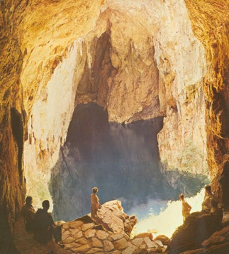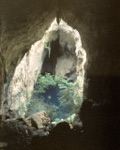 When the shore of the pool is reached the water is so clear that fish and underwater rock formations may be seen many metres below the surface. Side passages lead the visitor to other viewpoints, both of the pool and the vertical limestone cliffs which rise to a tree-fringed view of the sky.